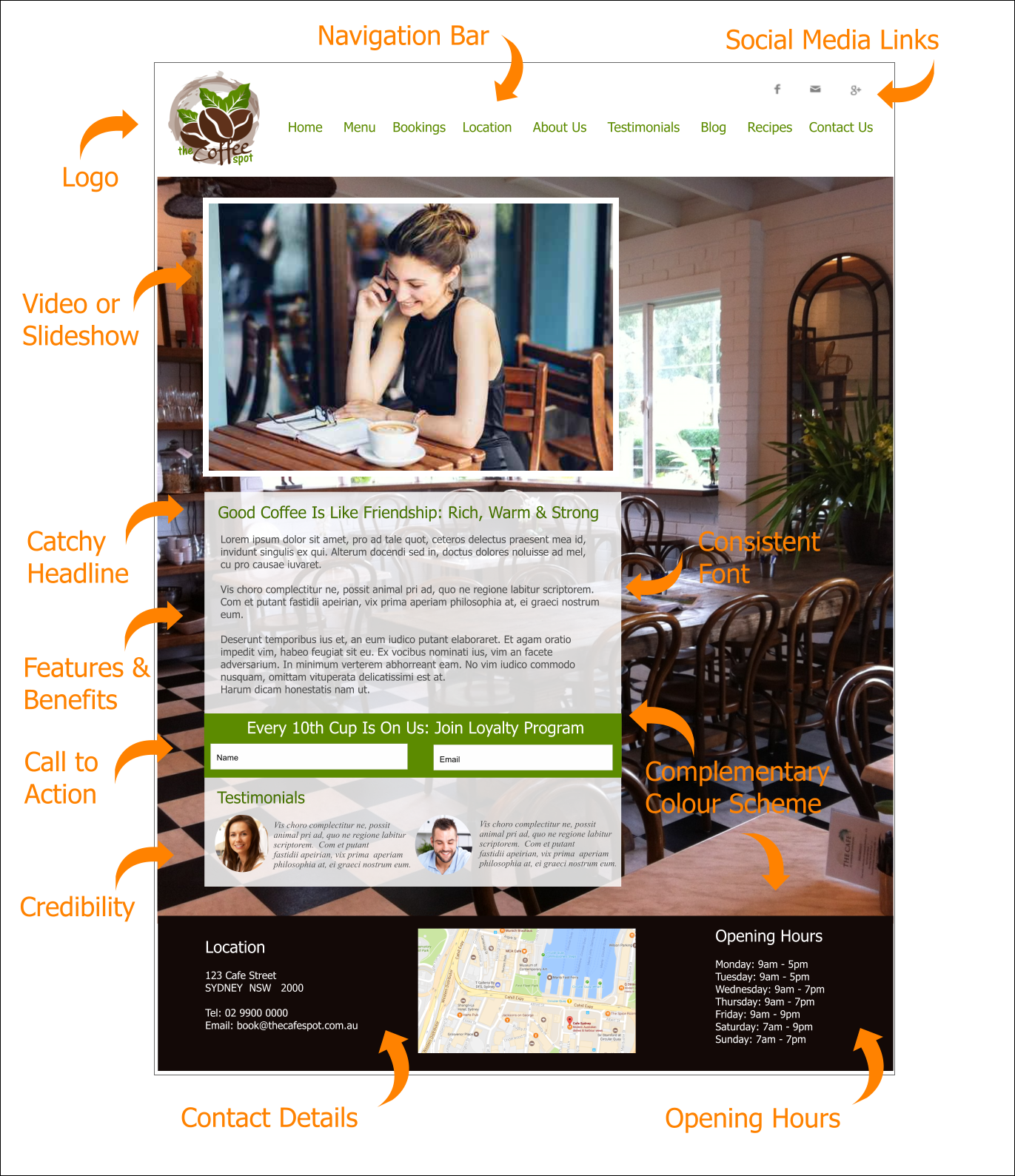 - Calls to action eg. if you sell products, then links to your online shopping cart. If you are a business coach, link to a calendar where visitors can book for a consult.