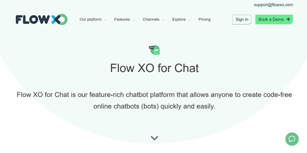 Flow XO is a no-code chatbot builder that strikes a balance between simplicity and power. It’s designed for businesses that want to create multi-channel bots without writing code, but still require enough flexibility to customize workflows with integrations and logic. The platform is especially popular among small businesses and agencies managing multiple clients.
